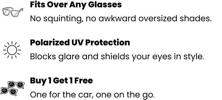 Lovisco Fit Overs are sunglasses designed to be worn directly over your everyday prescription glasses. They give you full UV protection and comfort without the hassle or cost of buying separate prescription sunglasses.